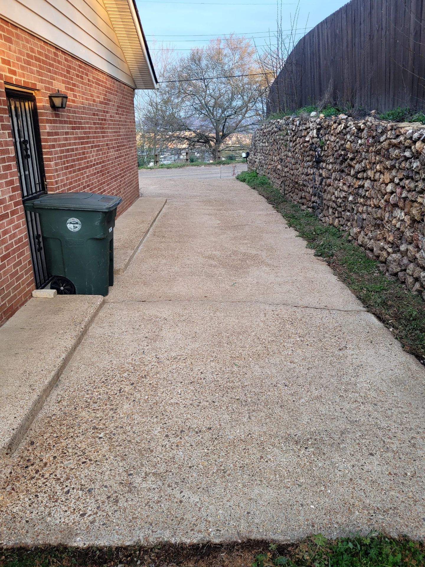 Before we began work, we walked the property to assess the condition of the concrete and to identify areas with the most staining. That step helped us determine the proper soft washing approach so we could clean effectively without using high pressure that could damage the surface.